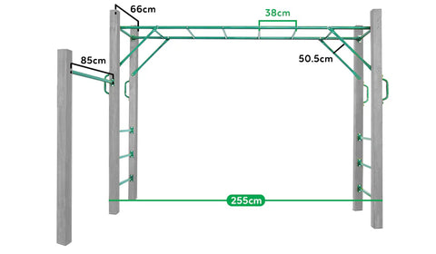This allows the configuration of custom monkey bars using the customer's own wooden or timber posts.  Please note that concrete is not compulsory but is simply a recommendation for additional stability.