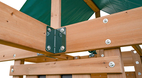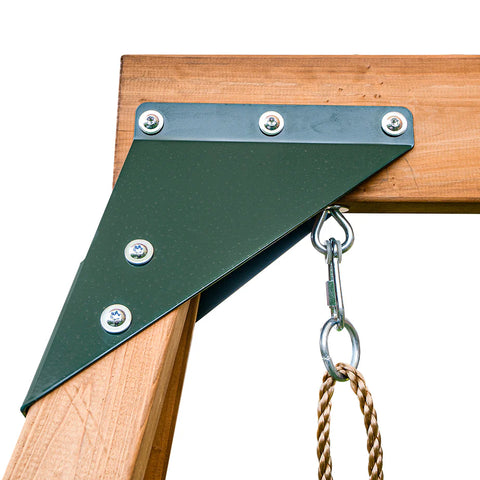 The Birmingham Play Centre Set is built to last with high strength steel brackets, ensuring maximum stability and durability. Each metal component is powder-coated, offering the best protection against the elements. This advanced coating prevents rust and wear, keeping the playset safe and looking great for years.