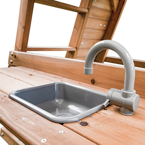 Perfect for preparing pretend picnics or hosting a backyard café, the kitchen lets children explore their culinary creativity during playtime.