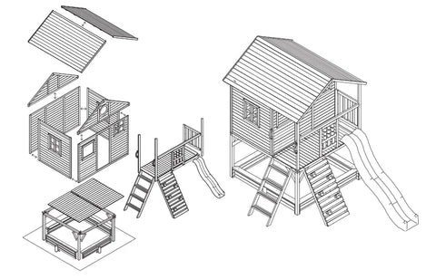 - Built-in Sandpit/ Ballpit: Our efficient design allows for a large sandpit or ball pit underneath the Warrigal Cubby house, with a big 1.75m x 1.9m play area.