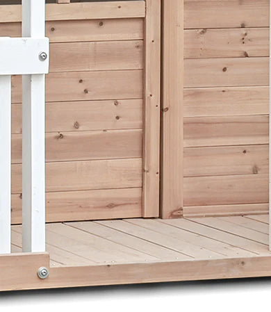 The 2.0m tall wooden Finley Cubby House provides heaps of room for play. Offering a spacious indoor cubby playhouse, as well as a deck and attractive balcony for lots of fun to be had - on many levels!