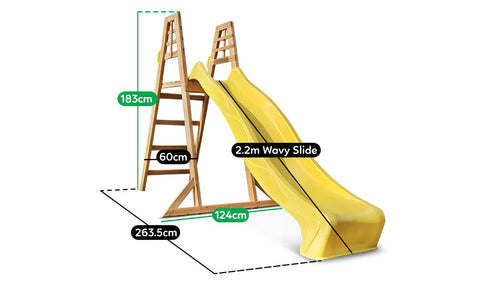 The fantastic premium wooden Sunshine 2.2m Climb and Slide in yellow from Lifespan Kids is ideal for little thrill seekers and an ideal addition to every Aussie backyard.  Years of outdoor fun and play guaranteed!