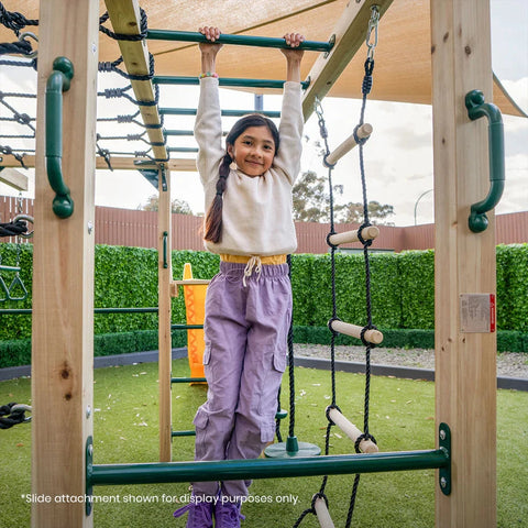 Absolutely everything for climbing and building upper body strength, to appeal to a wide range of ages and perfect for every Aussie backyard. An outdoor play wonderland!